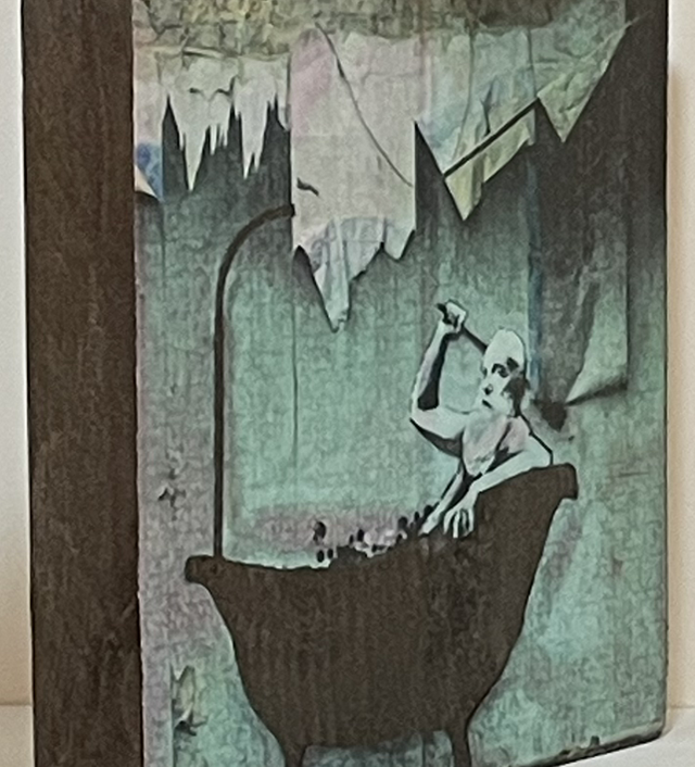 Holzblock - Banksy Bathroom, Größe ca. 20x20 cm