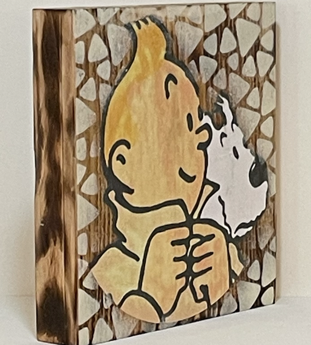 Holzblock Tim & Struppi beige, Größe ca. 20x20