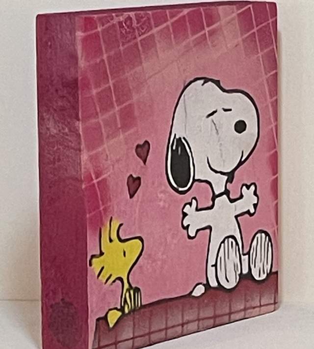 Holzblock Snoopy pink, Größe ca. 20x20 cm